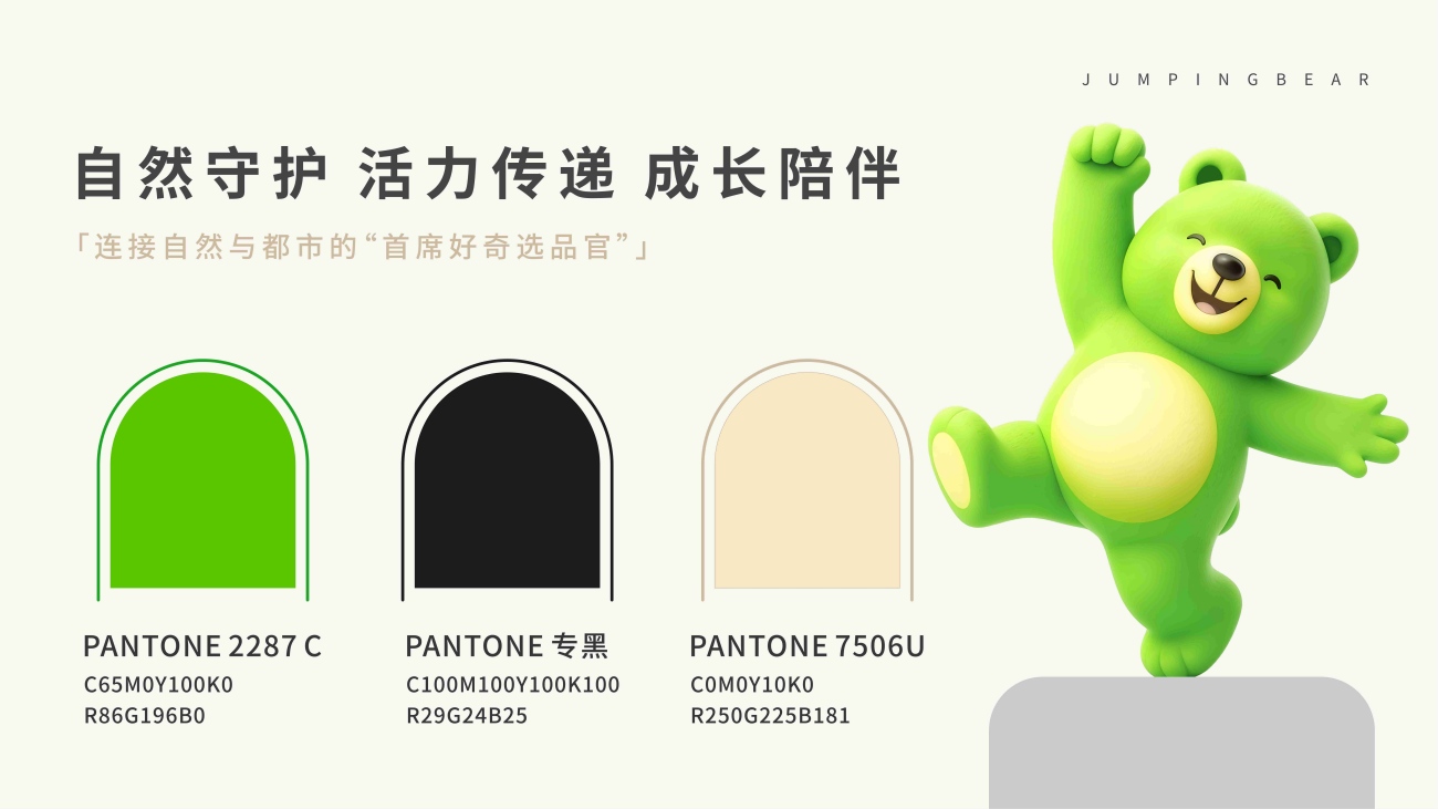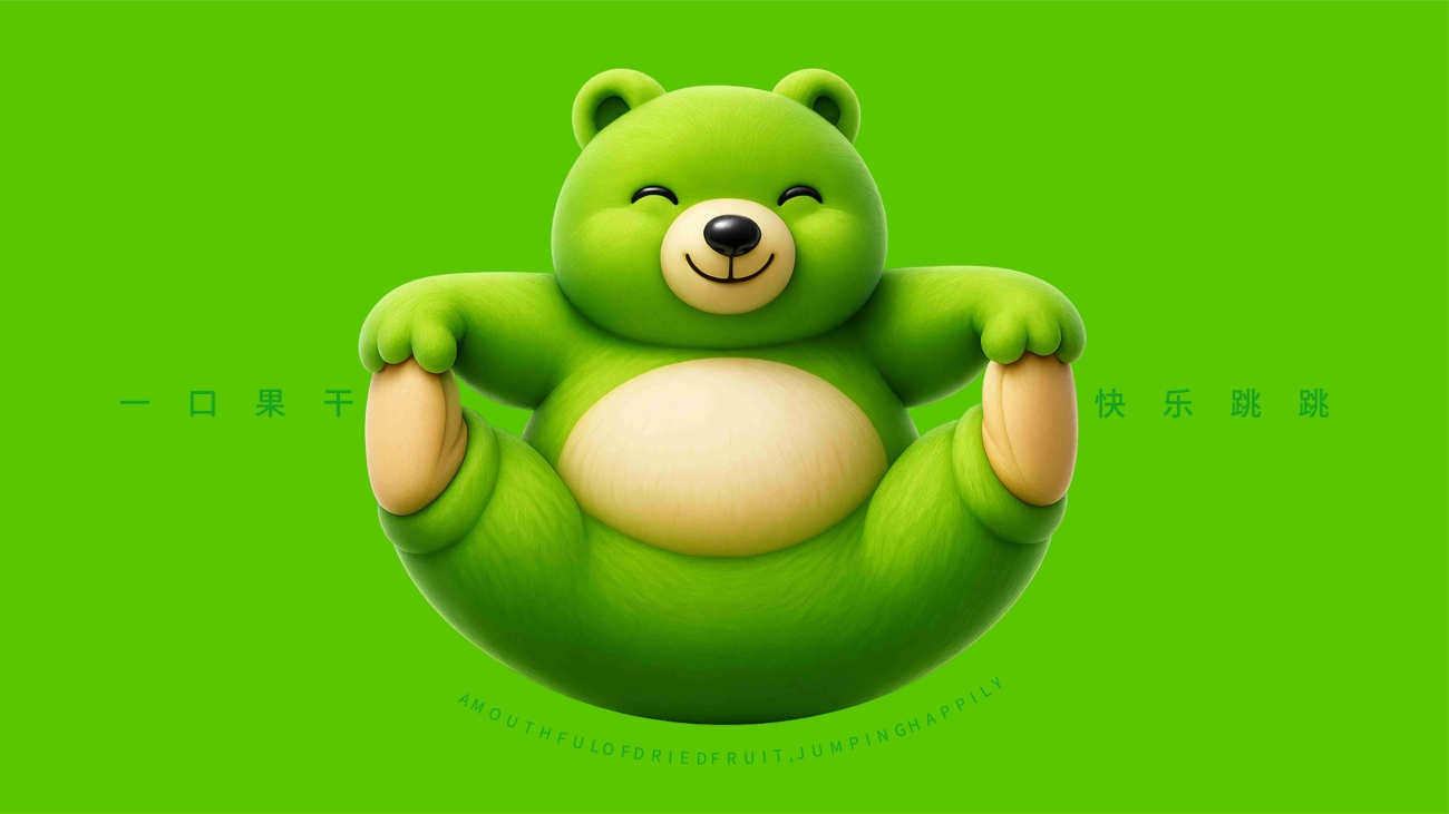 “跳跳熊诞生于山林深处,每日跳跃于果树与坚果林间寻找最富营养的果实,将天然活力带给每一个城市中的你。