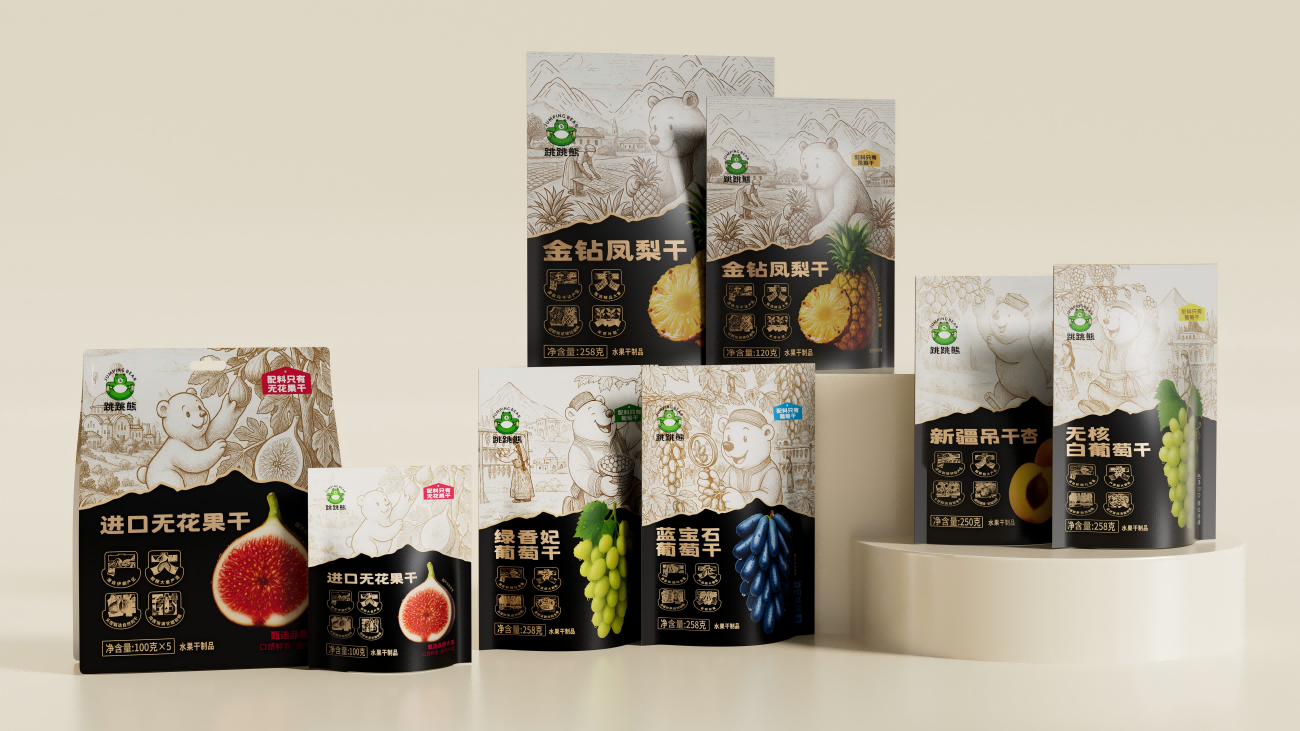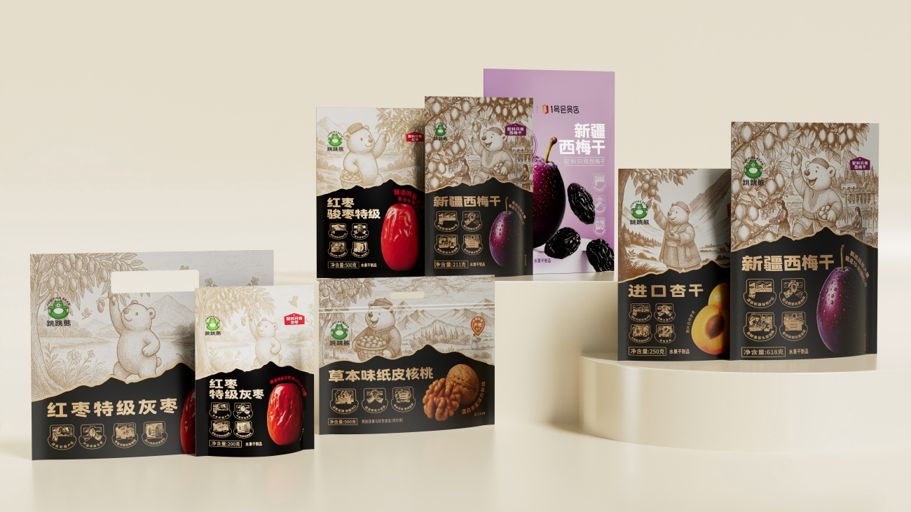 跳跳熊我们主要从农业的三产融合的角度去思考的,品牌本身在乌干达和新疆有加工厂,从产业品牌到产品品牌策划设计,历时1个月后产品全面上线,主要销售场景是盒马生鲜、京东、天猫等销售渠道,实现从0—1品牌定位建设。